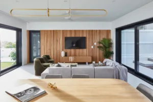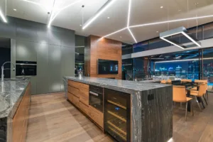 The clients are a professional couple who spend part of their time in Australia and the other overseas. They engaged Chris Clout to design the unit, and the final result was breathtaking. Remote access of all of the tech was essential so that they still had complete visibility and control when they weren’t in Australia.