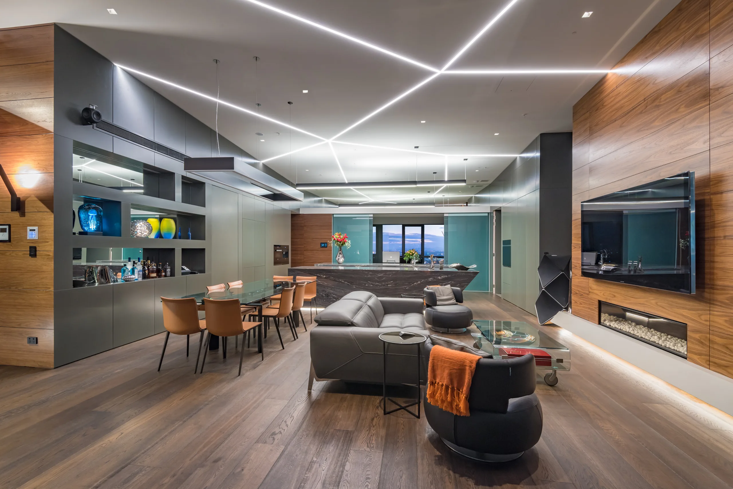 The clients are a professional couple who spend part of their time in Australia and the other overseas. They engaged Chris Clout to design the unit, and the final result was breathtaking. Remote access of all of the tech was essential so that they still had complete visibility and control when they weren’t in Australia.